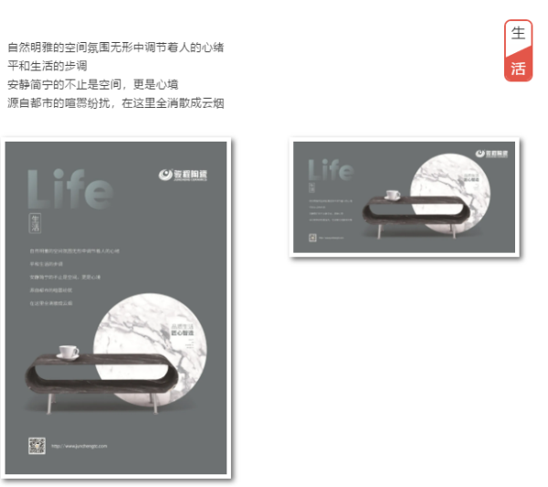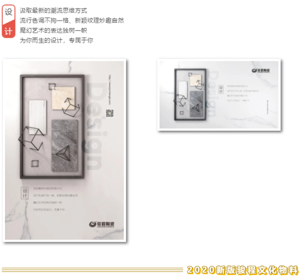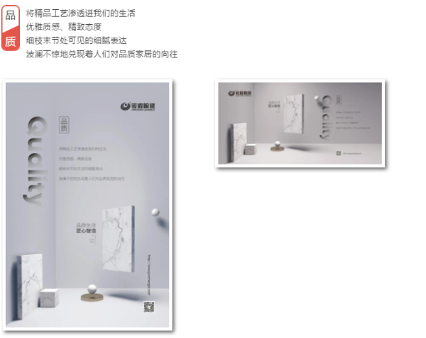 以“品質、設計、生活”為主題的文化物料,反映了駿程品牌對于空間方案的表達,駿程陶瓷,匠心智造,品質生活,是一個默默陪伴客戶十五載的暖心品牌。