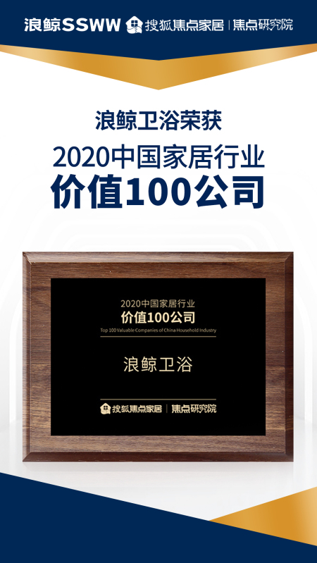 近日,“2020中國家居行業價值100公司”重磅發布!浪鯨衛浴作為泛家居行業的佼佼者,擁有沉淀多年的品牌價值,經線上投票和專家評審,從千家候選企業中脫穎而出,最終榮獲“2020中國家居行業價值100公司”!
