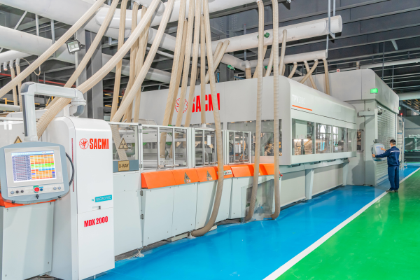 在蒙娜麗莎特高板數智化示范車間里,其三條生產線數控裝備占有率超過90%,自動化水平達到90%,實現從生產到裝配一站式自動化工作,智能化運作實現高效節能環保,綠色生產。
