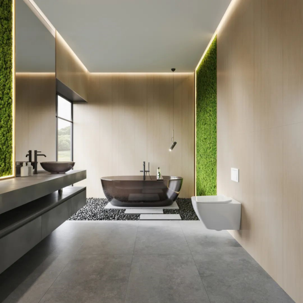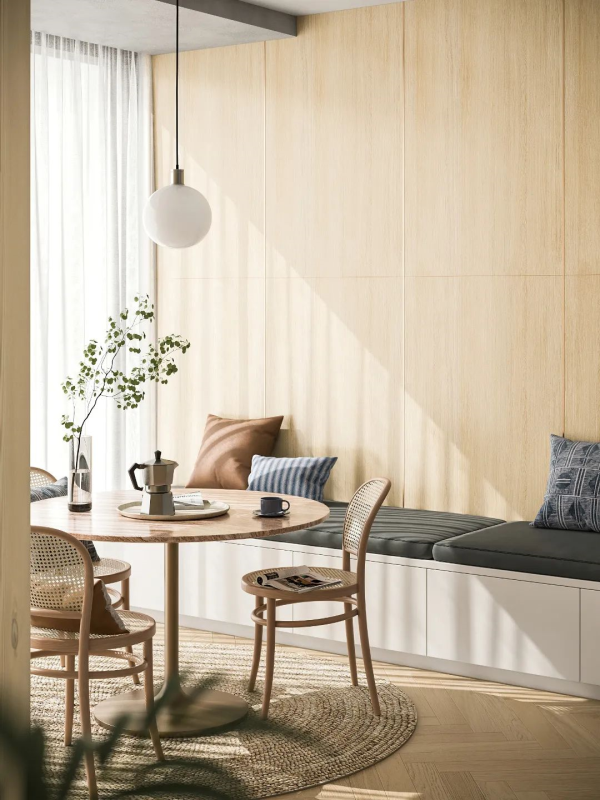 亞細亞全屋健康人居解決方案,墻面健康瓷墻板搭配地面亞細亞止滑+,墻面抗菌防霉防滲、地面干濕分區分級防滑,顏值實力雙在線,輕松對抗潮濕回南天。