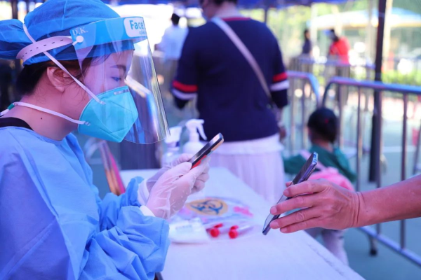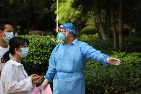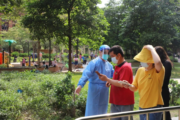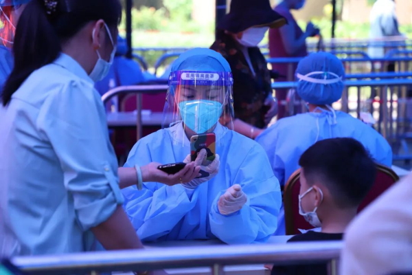 盡管天氣炎熱,但順成陶瓷集團的志愿者們始終保持耐心和細致,堅守在一線崗位上,為群眾快速有序完成核酸檢測提供暖心服務。