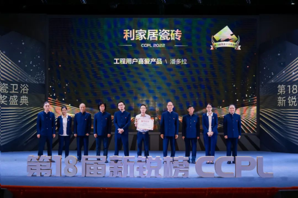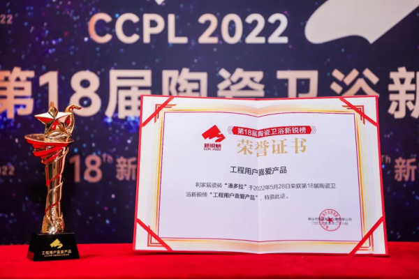 在大會上,利家居瓷磚憑借良好的社會口碑和強大的影響力,在眾多陶瓷品牌中脫穎而出,利家居瓷磚潘多拉系列一舉奪得“工程用戶喜愛產品”獎項。