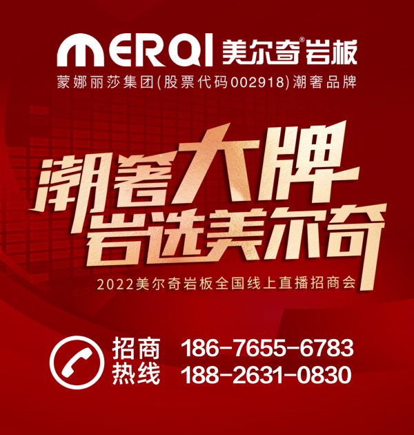美爾奇「城市合伙人招募計劃」正在火熱進行中。6月6日,“潮奢大牌,巖選美爾奇”2022美爾奇巖板全國線上直播招商會將隆重舉行,美爾奇向全國有夢想、有激情、有思路、有實干精神的經銷商和創業者拋出橄欖枝,歡迎志同道合的你,與美爾奇攜手一起開啟潮奢巖板的新紀元!