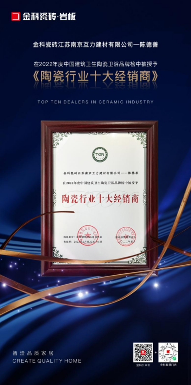 【南京互力建材有限公司陳德善】榮獲 "陶瓷行業十大經銷商"