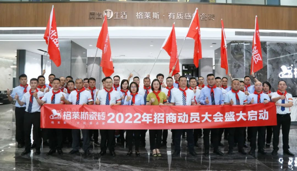 5月5日下午,“占位先機(jī) 創(chuàng)富未萊”2022年格萊斯瓷磚全國(guó)招商財(cái)富分享會(huì)啟動(dòng)會(huì)在格萊斯瓷磚總部展廳正式拉開帷幕。格萊斯瓷磚總經(jīng)理黎汝讓現(xiàn)場(chǎng)動(dòng)員,各大區(qū)經(jīng)理以及其銷售團(tuán)隊(duì)參加本次招商啟動(dòng)會(huì)。全員神采奕奕,以飽滿的精神、激昂的士氣吹響格萊斯招商“集結(jié)號(hào)”。