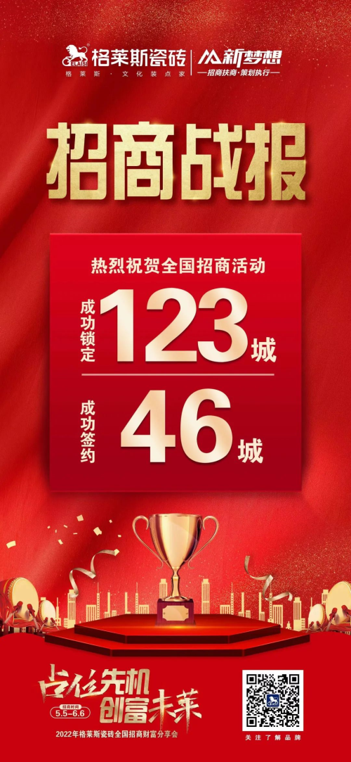 招商成績斐然,是品牌21年深耕發展的結果,也離不開各位經銷商朋友的支持與信任,格萊斯瓷磚將以創新思維驅動品牌發展,推出符合潮流趨勢的高品質好產品,用口碑締造自信國貨。