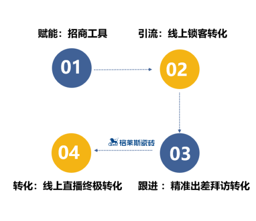 利用專業的策劃團隊+新媒體等互聯網工具,運用運營閉環的邏輯,采用線上+線下相融合的全新模式進行系統化招商,從引流到轉化,讓銷售人員擴大流量池、掌握標準的話術與技巧,精準鎖客,把結果為導向的轉化思維貫徹到全過程中,有效提升品牌銷售團隊的拓客能力,成為品牌煥新發展的新動能。
