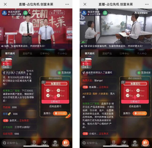 5月23日、6月6日的兩場的線上直播,讓客戶對品牌有更全面深入的了解。品牌營銷規劃戰略高度的詮釋,品牌實力突圍的深度解讀,快速盈利模式和投資回報精準算法,直播間全程干貨滿滿。主播們還深入格萊斯總部展廳和“綠色工廠”園區,為大家呈現好品質背后的綠色智能化技術及設備硬件。兩場直播人氣火熱,留言區不斷收到來自全國各地的咨詢,且不斷刷新著定金付款的新紀錄。新模式的轉化環環緊扣,不僅大大降低了前期的溝通成本,而且更高效更直觀地讓客戶省心放心地達成合作。