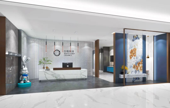 白兔瓷磚天津濱海塘沽店,參照品牌終端建設標準打造而成,植入創意個性的年輕元素,通過精致豐富的展示細節,打造潮流又別具一格的“三磚”白兔美學館。