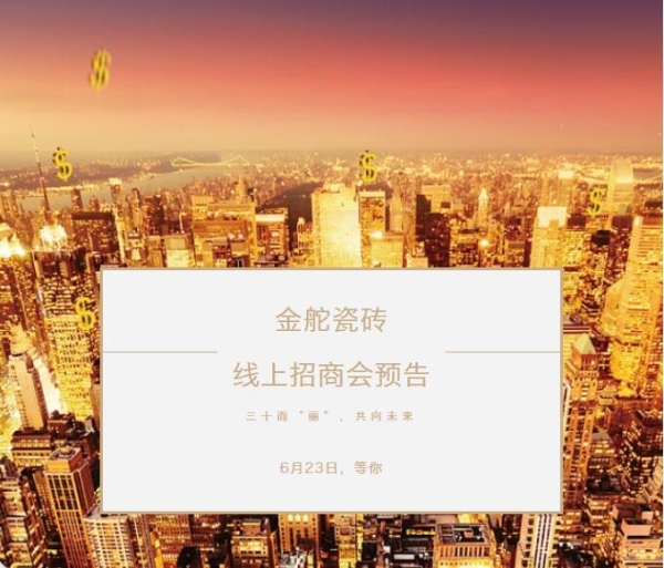 6月23日(周四)下午,三十而“麗”,共向未來——金舵瓷磚線上招商會,我們等你實現共贏。